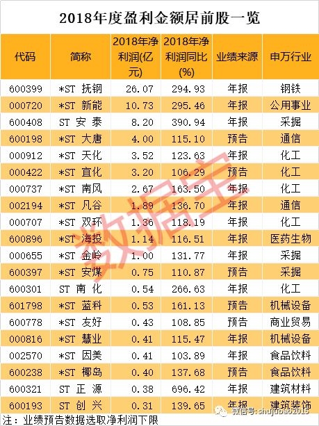 随着年度业绩陆续出炉,哪些ST股票有望实现扭亏为盈,并成功脱星摘帽?数据宝统计显示,根据年报、快报、预告净利润下限计算,33只ST股2018年业绩将扭亏为盈。从盈利金额来看,11只ST股去年盈利超亿元,包括*ST抚钢、*ST新能、ST安泰、*ST大唐等。