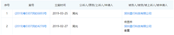 除此之外,周光也选择了以法律途径成为发声的方式,分别在2月27日和3月25日将佟显乔、衡量以及星行科技告上法庭。