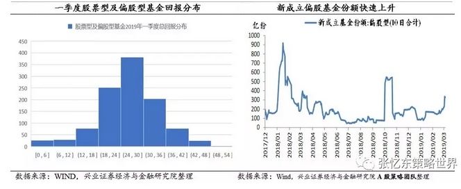 兴业证券认为,2019年一季度股票型基金和偏股混合型基金取得了不错的收益,收益最高者超过50%。赚钱效应之下,银行理财、保险资管仓位向股票再配置的动力足。居民财富再配置,新成立偏股基金申购份额快速上升,新成立基金建仓带来增量资金。