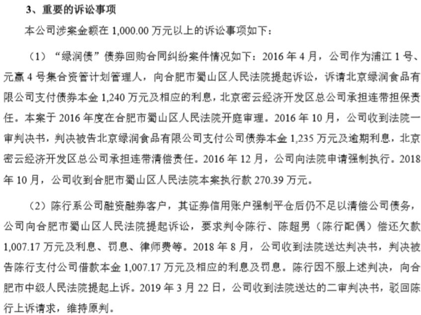 由于涉诉资金超过1000万元,达到重要诉讼事项的标准,该次诉讼在国元证券2018年年报中也予以列示。