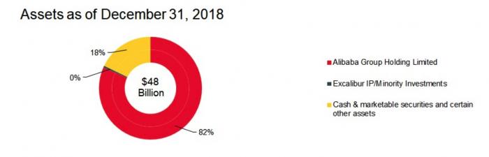 根据记者查阅Altaba基金网站,阿里巴巴股票为公司的主要资产。截止2018年12月31日,基金资产总额为480亿美元,其中82%或393.6亿美元为阿里巴巴股份。根据估算,基金所持有ADR约为阿里巴巴整体股份的10%。