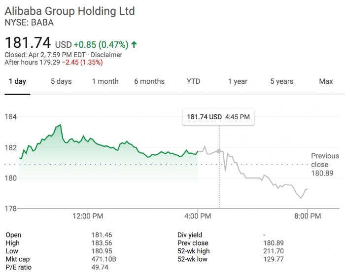 阿里巴巴股价盘后下跌2.45%。Altaba声明显示,将于北京时间4月3日晚间8点召开公司电话会议,就清算事项进行沟通。