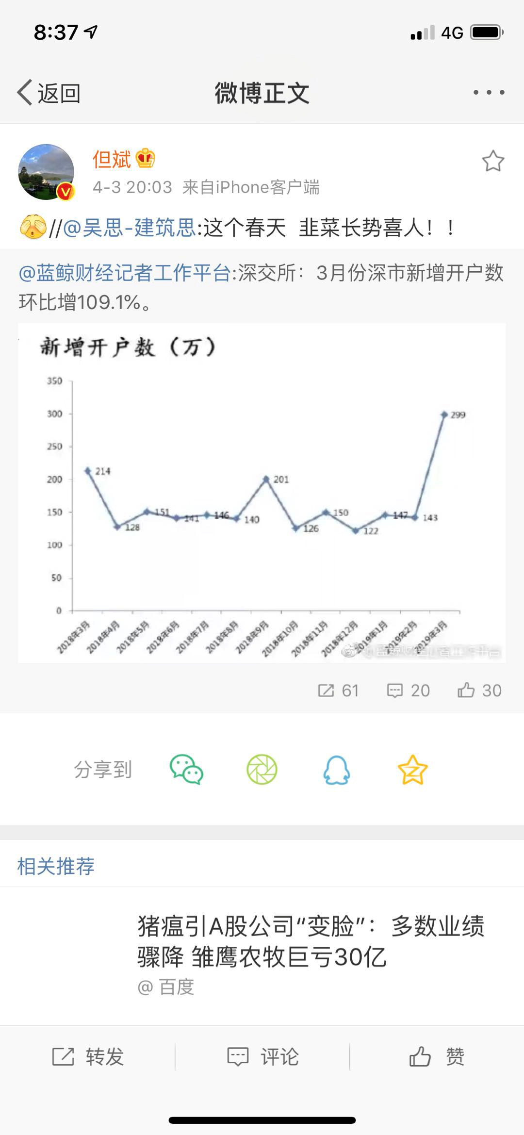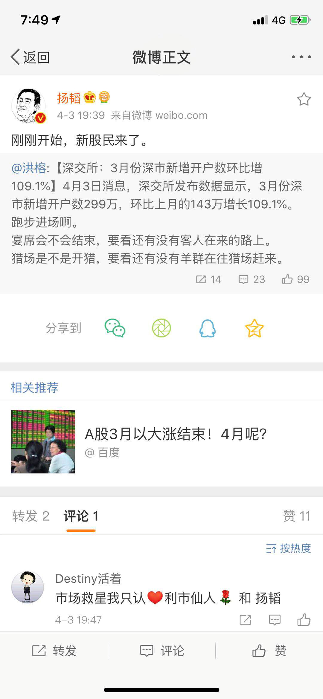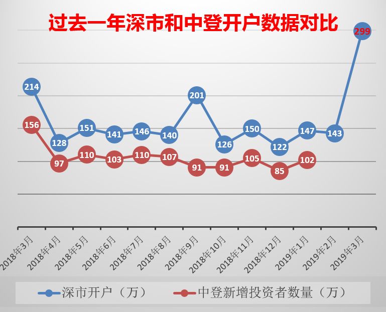 4月3日,深交所公布了一组数据,让A股投资者都沸腾了,深交所发布数据显示,3月份深市新增开户数299万,环比上月的143万增长109.1%。