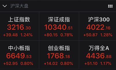 受昨日三大消息(证监会处罚“宁波敢死队”三剑客之一的舒逸民、央行请公安查处降准造谣者、社保基金拟减持交行股份)以及隔夜美股小幅下跌影响,今日A股早盘全线低开。沪指、深成指、中小板指、创业板指均低开近0.6%。不过,仅仅1分钟后,各大指数就集体上行并一路走高。沪指上午在3200点关前震荡之后,于下午发力拉升,顺利突破3200点大关,最终收涨1.24%,创去年5月以来的新高,也是时隔十个多月首次站上3200点大关。