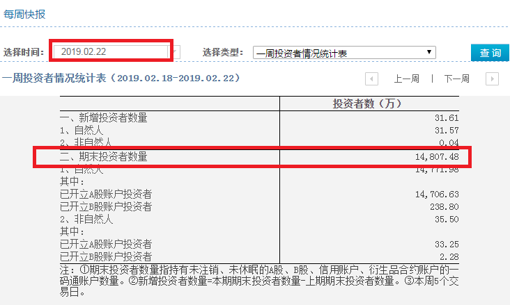 我们都知道,中国证券登记结算有限责任公司每周例行公布的“新增投资者数据”只更新到2019年2月22日当周,截至目前已缺席一个多月,中证登曾表示:“系统原因,现在数据确实没有更新,我们后期会恢复,但具体时间现在还不确定”。