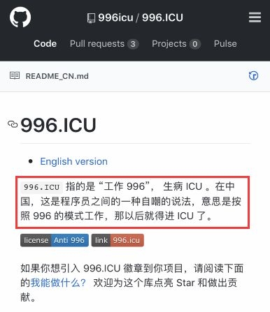 3月26日,一位实在受不了“996”的程序员,在程序员最流行的网站GitHub写下了一段话,并发起了名为“996.ICU”的开源项目,含义是“工作996,生病ICU”。