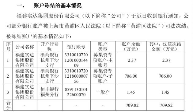 关于影响,实达集团表示,由于公司总部主要是控股职能,并未开展具体经营业务,上述银行账户被冻结尚未对公司的日常业务经营造成重大影响。被冻结账户中涉及募集资金金额约为706万元,其中约434万元原计划就是用于永久补充流动资金,剩余约272万元因金额较小在需要使用时可以用自有资金先行支付,因此对公司募集资金投资项目的实施也暂无重大影响。公司将争取尽快通过引进战略投资者承接上述债券的方式妥善处理本次诉讼事宜,尽快解除上述冻结。