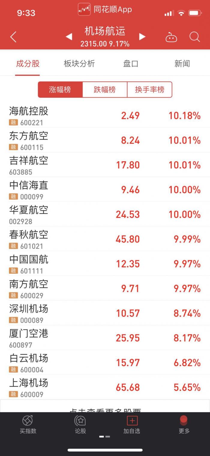 4月4日A股开盘,海航控股(600221.SH)、东方航空(600115.SH)、南方航空(600029.SH)、中国国航(601111.SH)、吉祥航空(603885.SH)、华夏航空(002928.SZ)等集体封死一字板。