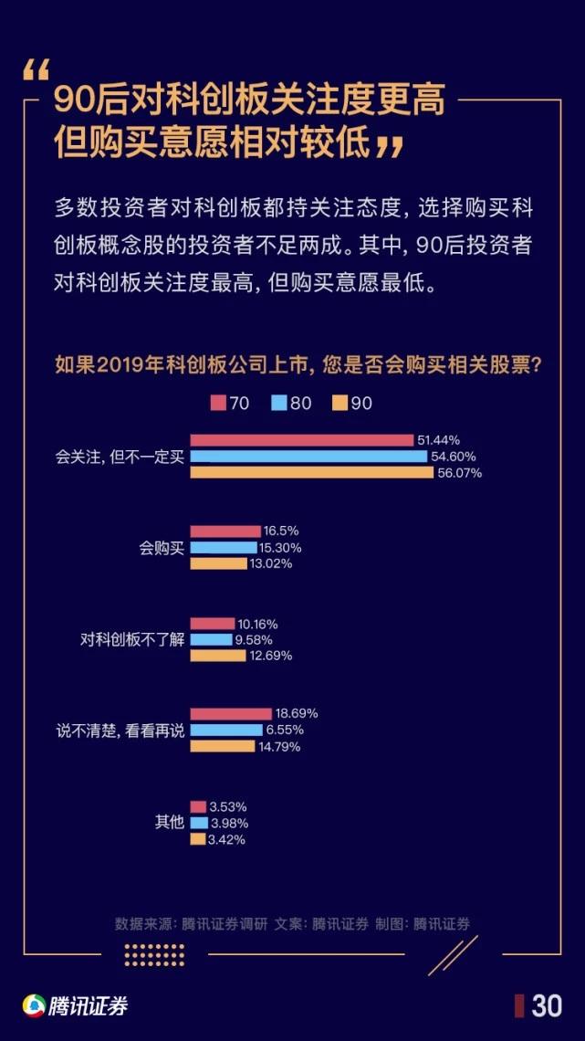 7、多数投资者对科创板都持关注态度,选择购买科创板概念股的投资者不足两成。其中,90后投资者对科创板关注度最高,但购买意愿最低。