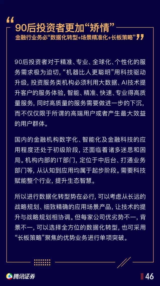 本次报告我们融合了网络调研、走访权威专家及部分90后投资者,市场公开大数据等多维数据,围绕着90后投资者的结构画像,不同场景下的投资行为、心理偏好、潜在需求等几个核心议题进行了探索。