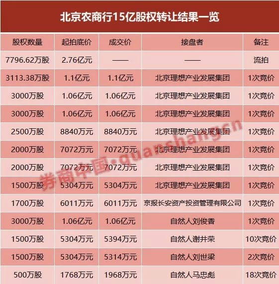 有福布斯富豪抢,还有党报来争!北京农商行15亿股权拍卖落定,竞拍记录堪称大片