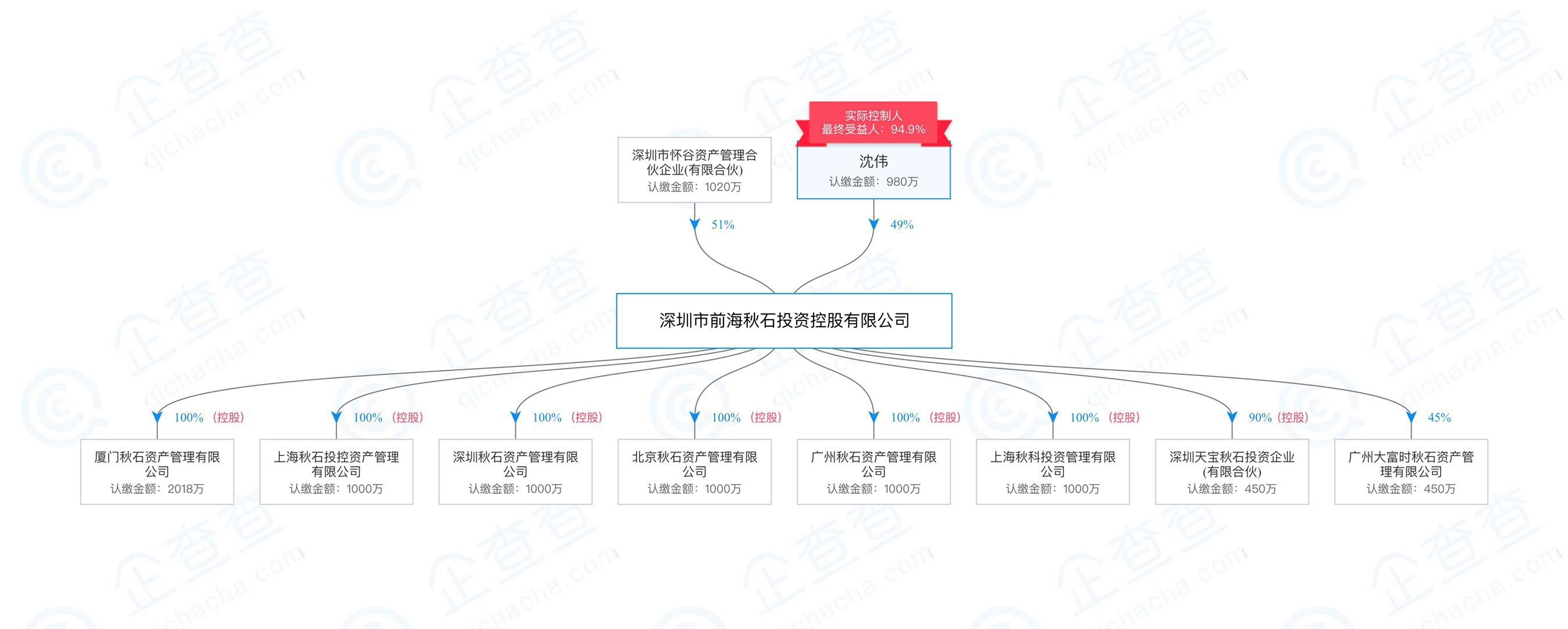 企查查的工商资料显示,广州秋石由深圳市前海秋石投资控股有限公司(下称“深圳前海秋石”)100%持股,后者的实际控制人为沈伟。