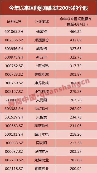 在这3个月的时间里,两市翻倍的个股来到了122只,除次新股之外,涨幅最大的个股顺灏股份上涨约433%,17只个股涨幅超过200%,869只个股涨幅超过50%,两市98.5%的个股录得涨幅,仅有56只股票下跌。