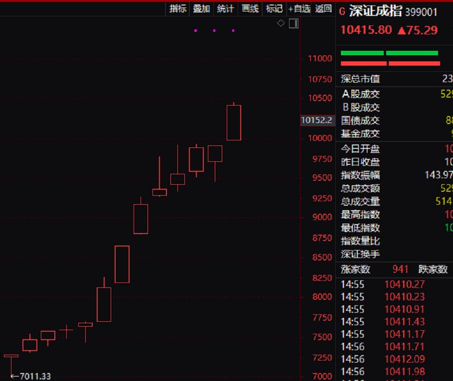 4月4日,市场在不经意中创下一个历史纪录:深成指周线13连阳创下历史纪录。市场上的赚钱效应已经发散,牛市的故事也开始传播。