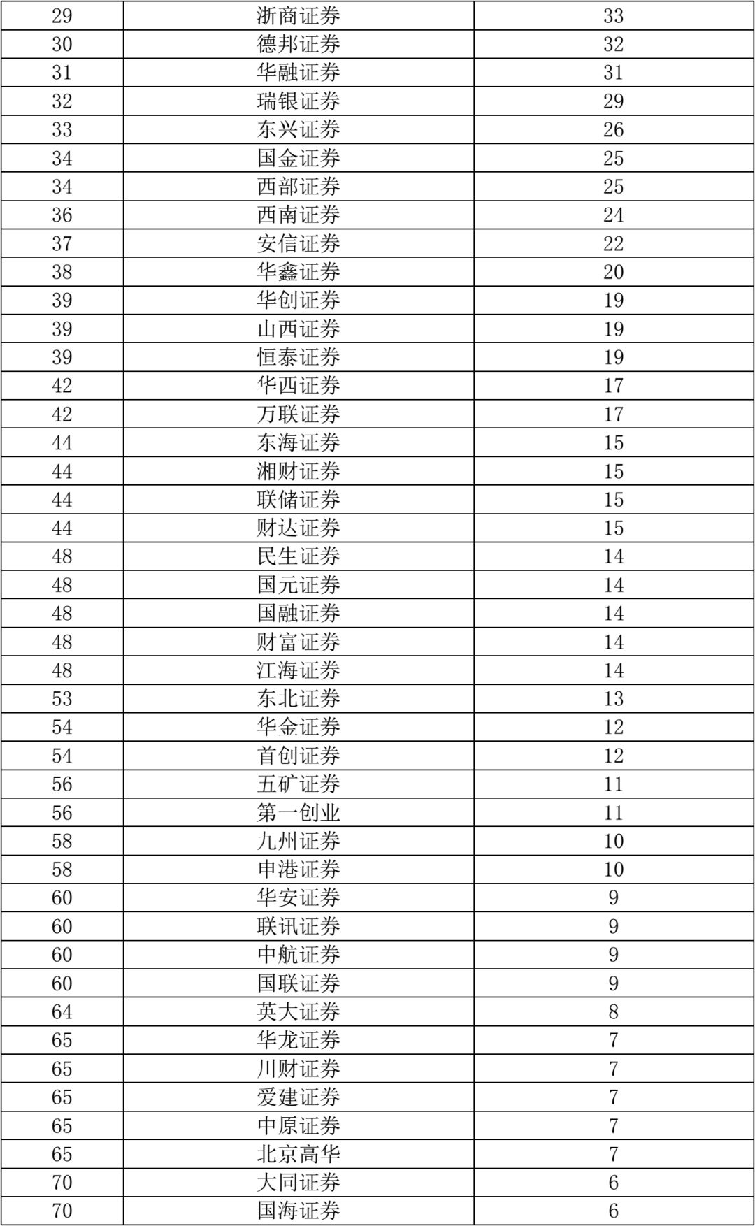 中证协数据显示,2018年度,55家券商的股票承销业务(包括主承销A股、外资股首次公开发行、配股及增发项目)做出了成绩,其中10家券商的股票主承销数量超过10个,中信、中信建投、国泰君安分别以33个、31个、22个居于前三;而另有14家券商2018年仅主承销了1个项目。