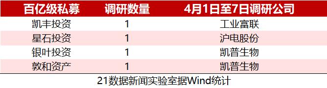 从具体调研机构来看,凯普生物获得了银叶投资和敦和资产两家百亿知名私募调研,此外,凯丰投资、星石投资分别调研了工业富联和沪电股份。