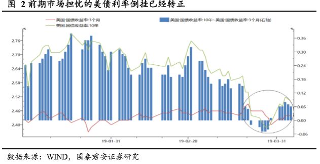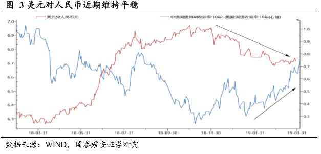 其一,美债利率倒挂缓和,经济衰退担忧暂缓。近期美国3月期和10年期国债收益率出现2007年以来首次倒挂,引发市场对于经济衰退的担忧,近期美债利率倒挂已经转正。美国3月ISM制造业指数55.3,高于预期的54.5和前值54.2,非农就业增加19.6万人,超过预期的17.7万人,失业率稳定在3.8%。整体来看,由于市场倒挂引发的经济衰退预期出现弱化,从标普500指数来看,除了倒挂刚出现时出现了回调,目前已经创出了新高。从美元兑人民币汇率表现来看,目前仍维持稳定,中美10Y国债利率目前处于扩大趋势之中。从资金流动和市场情绪两个角度看,外部环境都呈现出边际向好的态势。