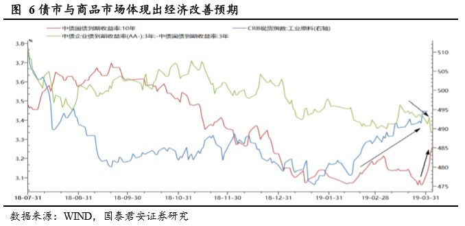 “风动”已来,“心动”初起,经济微观改善继续发酵。“风动”:中观经济表现,“幡动”:宏观经济数据,“心动”:市场经济改善预期,那么当前整体状态就是“风动已来,幡动未见,心动初起”。1)近期美债利率倒挂已经转正,经济衰退担忧暂缓。美元兑人民币汇率维持稳定,从资金流动和市场情绪两个角度看,外部环境都呈现出边际向好的态势。2)PMI数据强势,债市与商品市场表现已开始体现经济改善预期。3月官方PMI50.5,6大发电集团月日均耗煤、螺纹钢周度库存也显示出经济改善趋势较好,行业草根调研显示3月工程机械、高端消费、家电将呈现出改善趋势。债市表现和CRB指数也显示出资本市场经济改善预期正在强化。3)降税减费举措超预期推进、中美经贸谈判取得新进展、科创板推进提速,有利于增强经济中长期信心。