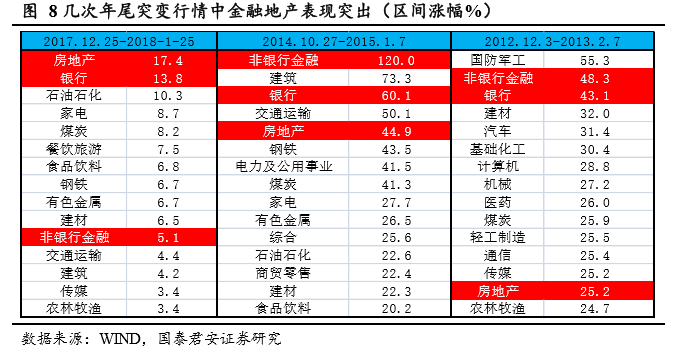 经济表现超预期,把握今年市场三个胜负手。1)胜负手之一:保证前期投资收益兑现落袋。在前期获得优势投资者,减仓并非优选,转向均衡将会是保持相对领先地位的合理选择。2)胜负手之二:对后一阶段早周期结构性机会的把握。3)胜负手之三:今年年尾防行情突变风险。结合2012年、2014年和2017年历史经验来看,当宏观经济趋势不明朗,年尾市场很容易出现突变行情,金融地产是重点。