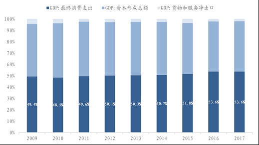 最终消费在2018年占据了GDP总量的54%以上,并且对GDP增速的贡献率达到76.2%,消费正成为经济增长的绝对第一拉动力,政府对于消费重视程度也已上升至国家战略高度,2019年已经陆续出台了多项政策促进消费平稳增长。