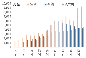 *日本调查的白电产品更新周期:空调:8.3-12.5年;冰箱:9.9-12.4年;洗衣机:7.9-9.7年;吸尘器:7.0-8.3年。