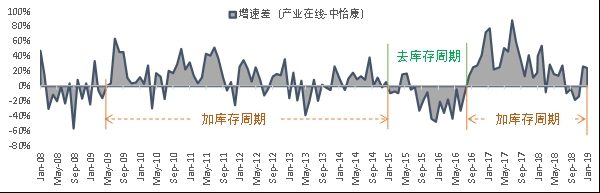 在家电行业,我们大致可以用中怡康零售监测的增速和产业在线厂端出货(内销)的增速差作为渠道库存观察窗口之一:当工厂增速持续高于零售增速时,可以认为渠道库存趋于增加,反之亦反之。