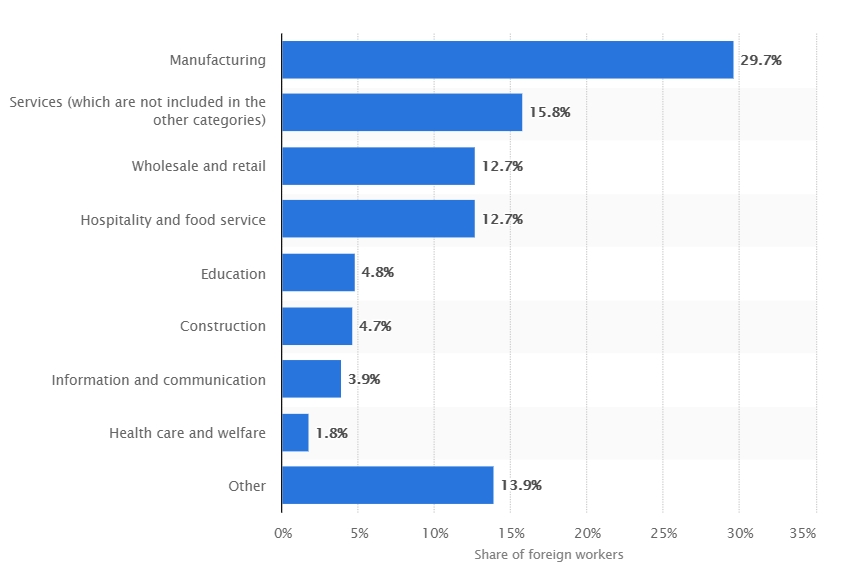 “1号签证”主要为了在劳动力严重短缺的护理、餐饮、农业和建筑等14个行业接收外国劳动者。
