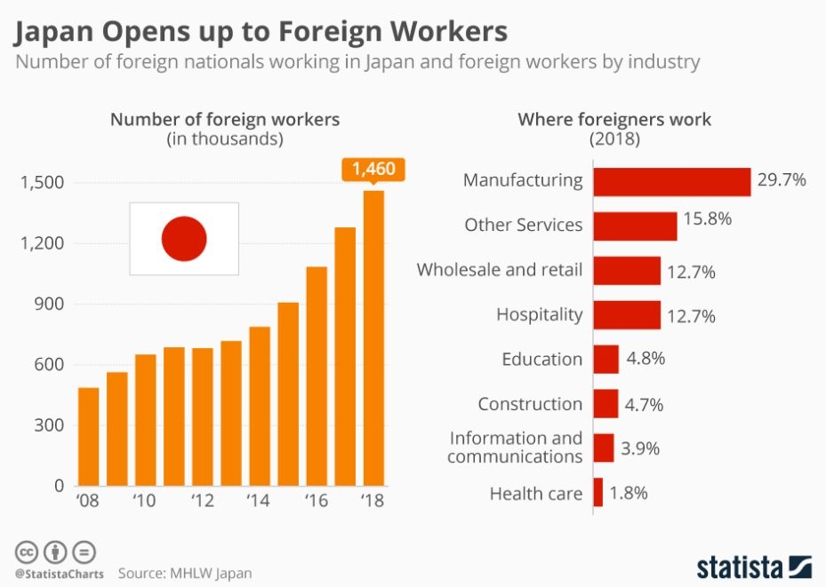 长期以来,“移民”在日本属于禁忌话题。先前,日本接纳的外国工作者仅限医生、教授等高度专业化的人才。随着人口老龄化和劳动力减少,接纳外籍劳动者的讨论开始增加。