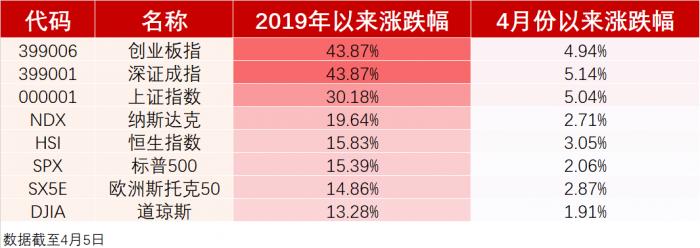 事实上,受中国3月制造业PMI重返扩张区间、美国3月非农数据超预期等好消息提振,市场对美债收益率倒挂引发经济衰退的担忧有所缓解,同时,第九轮中美经贸高级别磋商顺利结束,两国均表示谈判取得积极进展,都助推了市场投资者的乐观情绪,全球股市在过去一周普遍上涨。