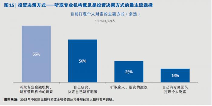 的巨大动力。在 2018 年的调研中,有 66% 的受访高净值人士表示其主要的投资决策方式是