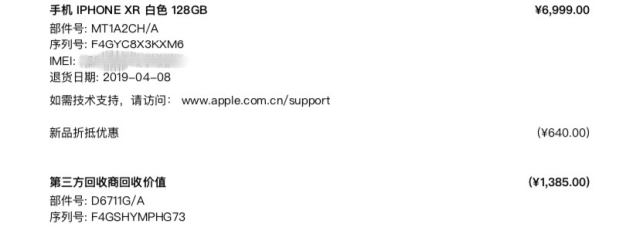据店员表示,受制造业增值税下调的影响,品牌多款产品售价都有所调整,除王小姐换购所得的iPhone Xr(128GB)外,iPhone7、8等几款旧机型也在调价范围内,而王小姐用来“以旧换新”的旧款手机正是iPhone7。“不仅iPhone Xr便宜了,iPhone 7也降价了,折抵换购退差价自然也会受影响。”