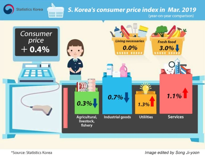 据韩国统计局公布的数据,3月份该国消费者物价指数(CPI)较上年同期增长0.5%,环比增幅为0.4%。而上一次CPI如此疲软是在亚洲金融危机之后的经济衰退期间,1999年7月韩国CPI只增长了0.3%。而1月至3月期间的韩国CPI同比只增长了0.5%,是自1965年以来涨幅最低的一个季度。