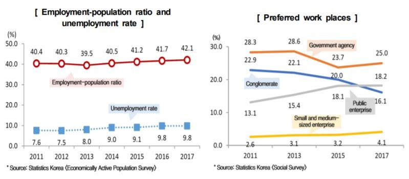 根据2017年的一项政府调查,在韩国青少年和年轻人中,最受欢迎的职业是政府公务员,而不是自我创业或进入企业。