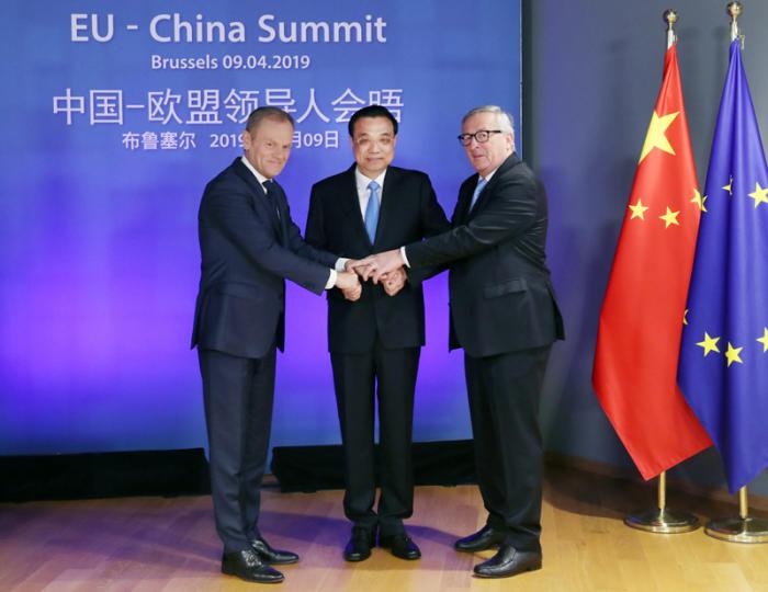 当地时间4月9日下午,国务院总理李克强在布鲁塞尔同欧洲理事会主席图斯克、欧盟委员会主席容克共同主持第二十一次中国-欧盟领导人会晤。会晤后,双方一致同意发表《第二十一次中国-欧盟领导人会晤联合声明》。