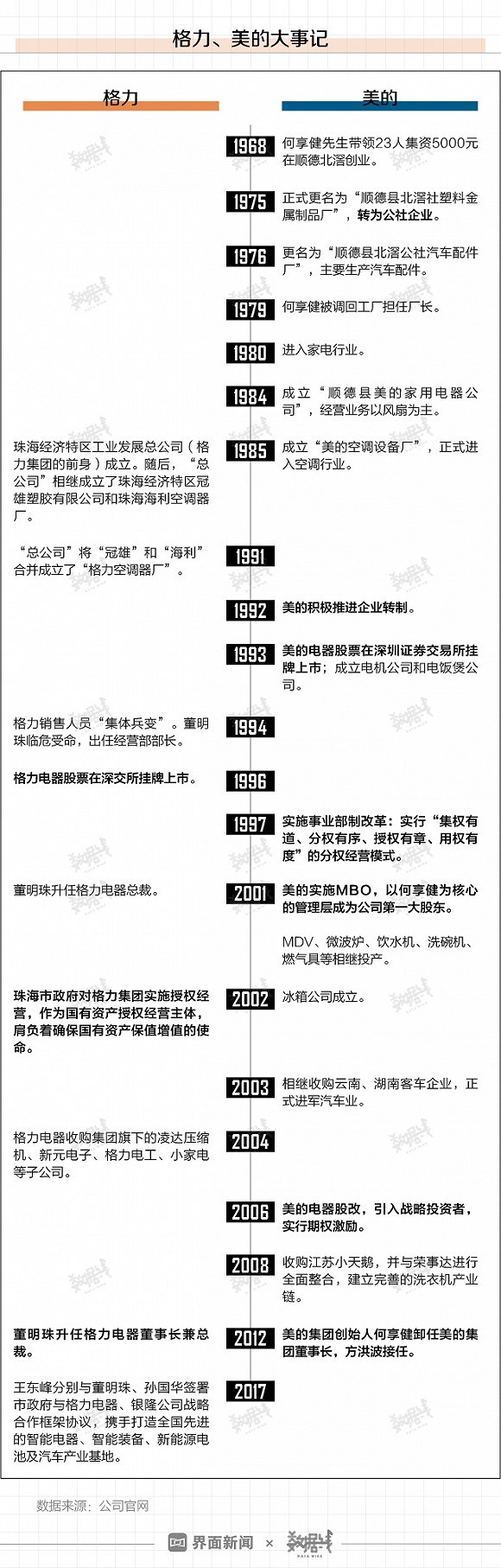 格力电器和美的集团作为中国家电行业的两个明星企业,可谓家喻户晓。从历史角度来看,两家公司也有许多相似之处:1985年先后进入空调业,2012年同时完成掌门人任命,股权也同样经历从集中到分散。