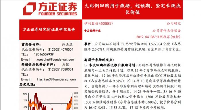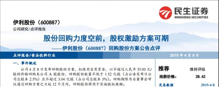 伊利股份推出百亿元回购计划后,也被研究机构颇为看好。