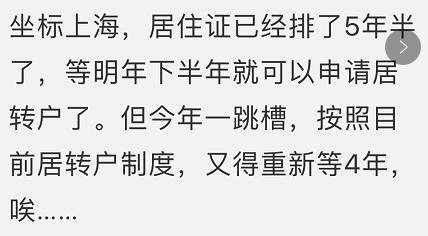 大城市落户难,也是读者吐槽的重点。一坐标上海的网友表示,居住证排了5年半,明年下半年就能申请居转户,但今年一跳槽,就又要重新等四年。更有读者表示,京沪是落户难度系数最高的。