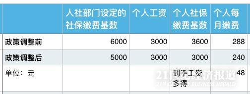 调整后,按全口径城镇单位就业人员平均工资5000元,作为新的社保缴费基数。个人缴费基数下限相应降低到3000元,该职工就可按3000元计算缴费金额。