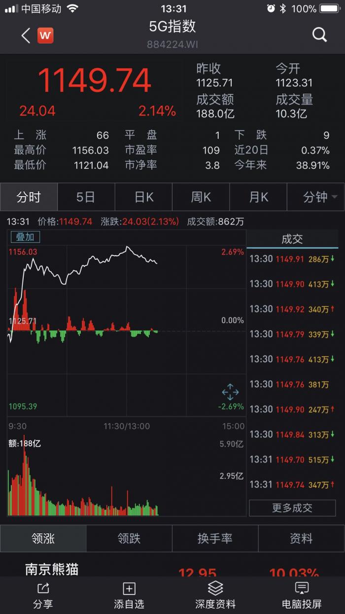 在大盘持续震荡之下,5G概念股走强,南京熊猫、广哈通信直接涨停,新易盛、广和通等股票上涨逾5%。