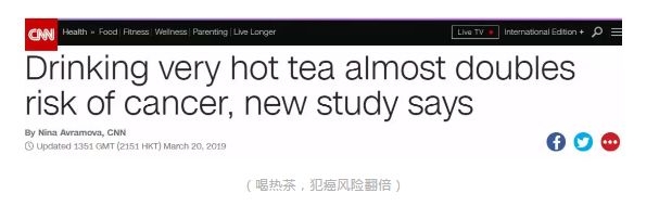 2019年3月,一项发表在《国际癌症杂志》(International Journal of Cancer)上的超大规模研究,又一次实锤认证这个理论:喝热茶(热水),犯癌风险翻倍!