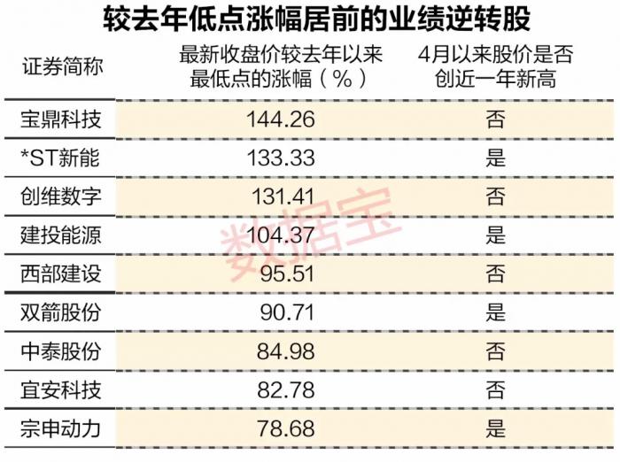双良节能、科伦药业、创维数字等35股去年业绩大逆转,其中超七成个股今年以来跑赢上证指数,4股获北上资金明显加仓。