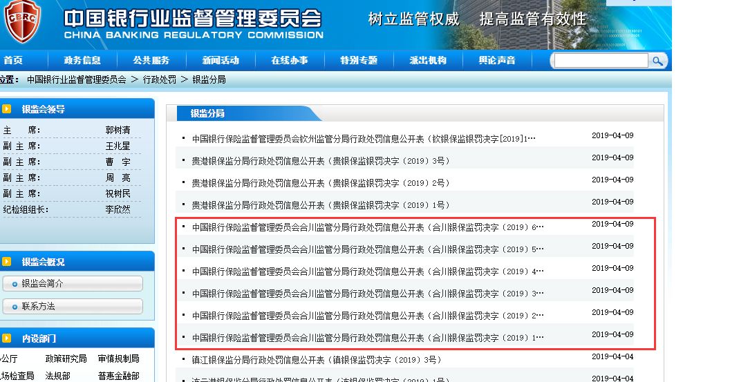 4月9日,银保监会公布6张来自银保监会合川监管分局的罚单,做出处罚决定的时间均为3月28日。