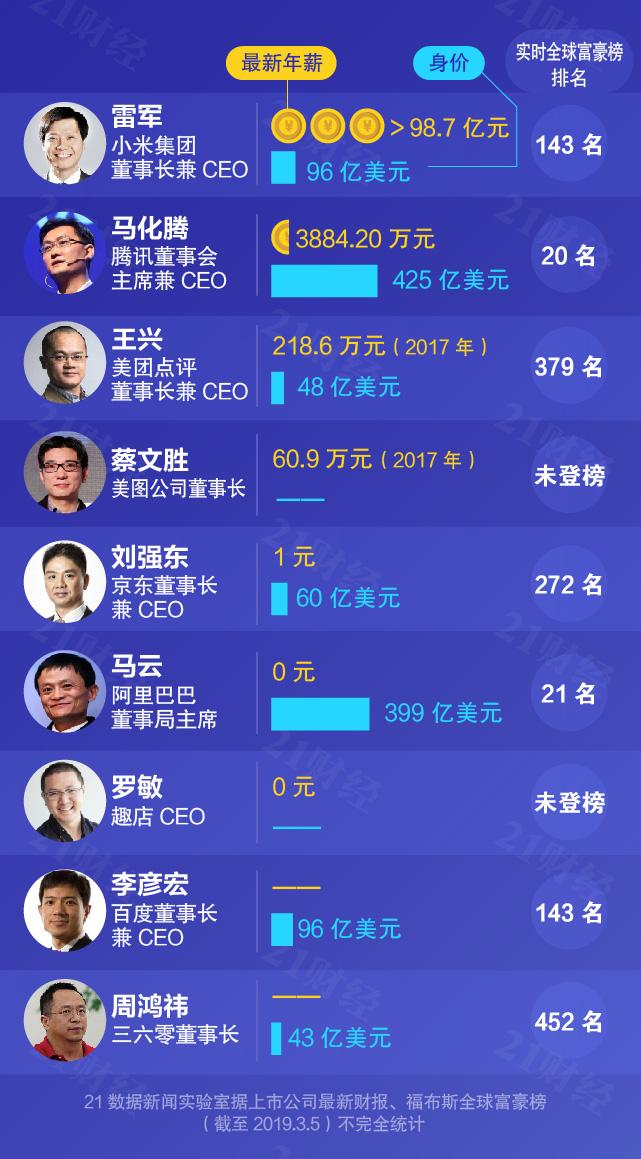 马云0元雷军百亿,互联网大佬的年薪差距原来这么大!(附排名)