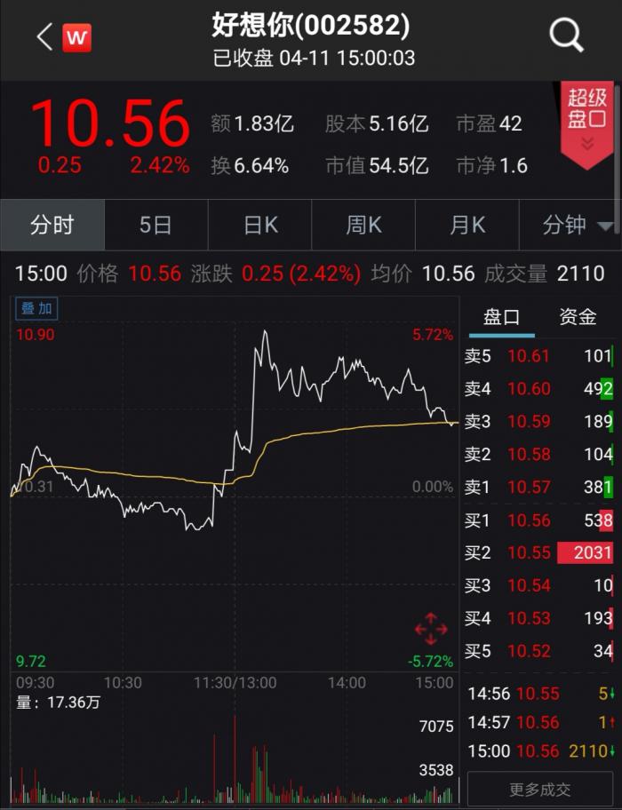 午间开盘后,A股“红枣第一股”好想你(002582.SZ)应声上涨,截至收盘,股价上涨2.42%。