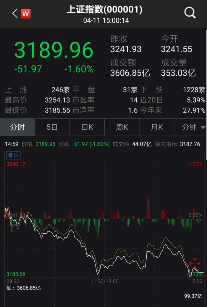 同日,沪深指数走出深幅调整走势。上证指数失守3200点,下跌1.60%;深圳成指下跌2.65%。