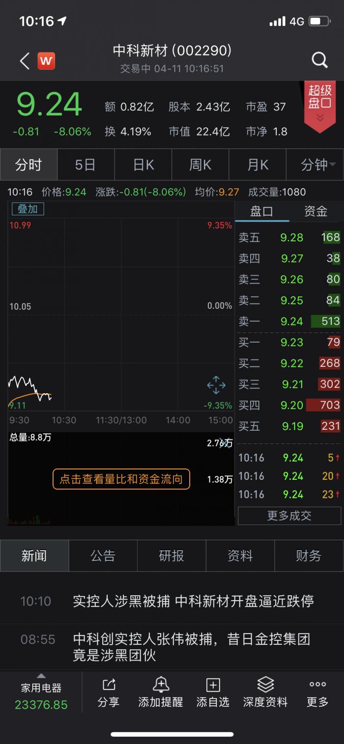 4月11日早间,中科新材(002290.SZ)发布公告称,据公安部门通报,公司实控人张伟涉嫌黑社会犯罪被深圳市公安机关执行逮捕,目前案件正在侦查过程中。