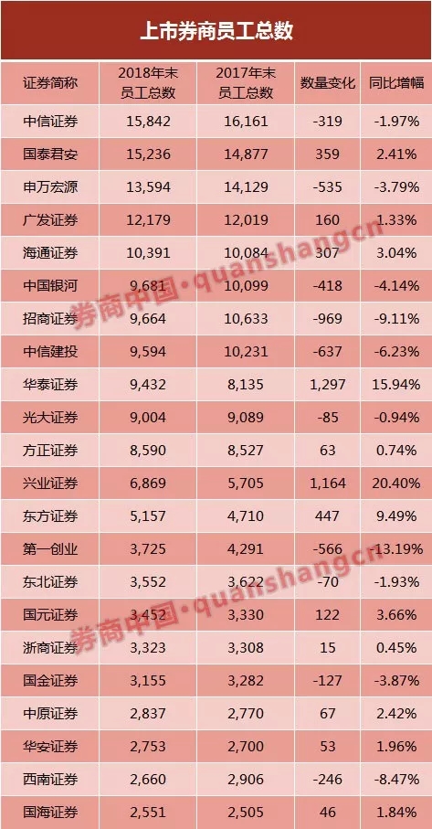华泰证券2018年的员工增量行业第一。最早发力金融科技的华泰证券近来大动作频频,春节后酝酿大变革,将经纪业务部并入网金部;上月末,公司混改方案落地,开启全球选聘职业经理人;9日晚,各家券商披露3月报数据,华泰证券单月营收、净利超越中信、国君位居行业第一。