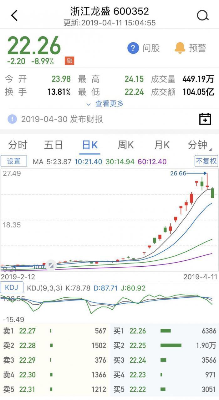 经过前期飙涨后,浙江龙盛开始进入调整阶段,再刷出26.66元的高点后,4月11日公司股价出现了8.99%的回落。