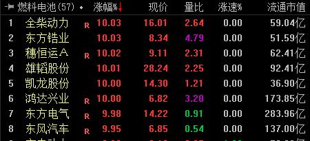 燃料电池概念股近来持续受市场关注,继4月11日该板块出现4只个股涨停后,4月12日上午一度又有8只个股涨停。