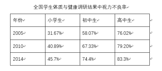 我国青少年的近视率居世界第一,目前不仅在逐年攀升,而且呈现低龄化的趋势。